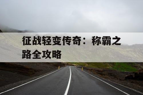 《征战轻变传奇:称霸之路全攻略》是一本详细介绍传奇游戏攻略的指南。它提供了玩家在游戏中如何快速升级、获取装备、挑战BOSS等实用技巧。通过掌握这些攻略,玩家可以更好地在游戏中称霸,成为传奇世界的强者。该全攻略还提供了丰富的游戏经验和策略,帮助玩家在游戏中取得更好的成绩。对于喜欢传奇游戏的玩家来说,这本攻略是一本不可或缺的指南。
