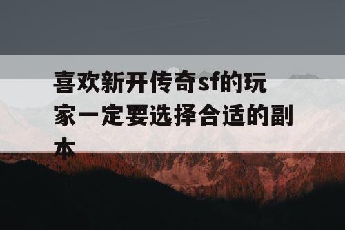 选择合适的副本是玩家在新开传奇sf中提升实力的重要环节。一些如何选择合适的副本的分析: